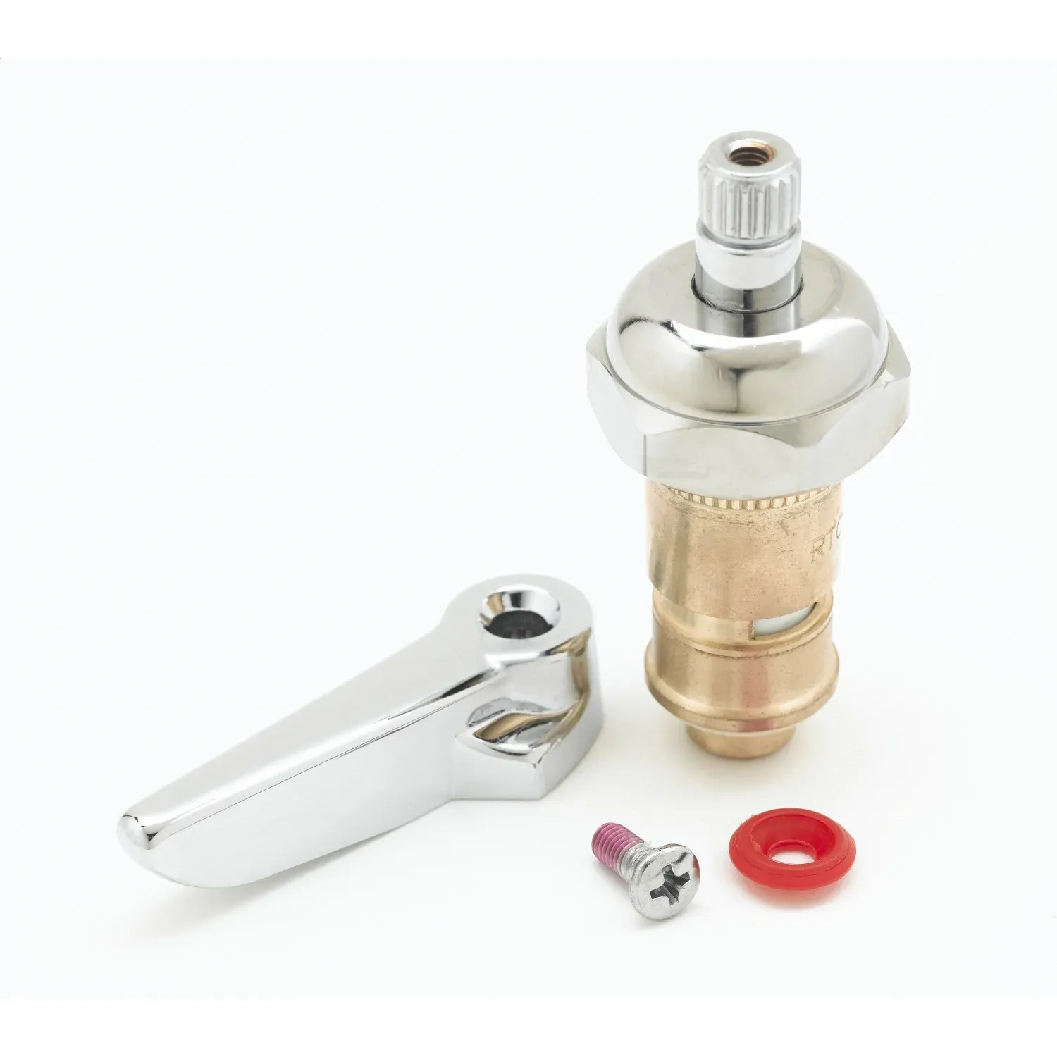 Maintain System Performance with T&S Brass, 012444-25, Faucet, Parts & Accessories. This high-quality faucet cartridge is designed to ensure optimal performance in commercial restaurant settings. With its Cerama Cartridge and lever handle with a red index and screw, this faucet part is built to withstand the demands of a busy kitchen. Made from chrome-plated brass and featuring a chrome-plated metal handle, this cartridge is not only durable but also adds a sleek and professional look to any restaurant sink. Whether you're replacing a worn-out cartridge or upgrading your faucet, this T&S Brass cartridge is the perfect choice to maintain the efficiency and functionality of your restaurant's plumbing system.