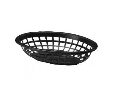 Craft culinary masterpieces with the TableCraft Products, 1071BK, Basket, Fast Food. This oval side order basket is designed for commercial restaurant use, making it the perfect addition to any fast food establishment. With dimensions of 7-3/4" x 5-1/2" x 1-7/8", it provides ample space for serving fries, onion rings, or other delicious sides. Made from heat-resistant polyethylene, this basket can withstand temperatures up to 150F/65C, making it safe to use under heat lamps or in the dishwasher and microwave. Its sleek black color adds a touch of sophistication to any table setting. Elevate your food presentation and impress your customers with the TableCraft Products, 1071BK, Basket, Fast Food. Made in the USA, this high-quality basket is a must-have for any commercial kitchen.