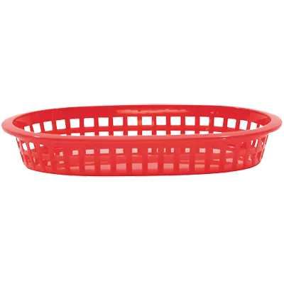 Invest in culinary excellence with TableCraft Products, 1073R, Basket, Fast Food. This A La Carte Platter Basket is a must-have for any commercial restaurant. With its oval shape and dimensions of 8-1/2" x 6" x 1-1/2", it provides ample space for serving a variety of dishes. Made from heat-resistant polypropylene, this basket can withstand temperatures up to 150F/65C, making it perfect for use with heat lamps, dishwashers, and microwaves. Its vibrant red color adds a touch of style to any table setting. Designed and manufactured in the USA, this basket is of the highest quality and built to last. Elevate your food presentation and impress your customers with TableCraft Products, 1073R, Basket, Fast Food.