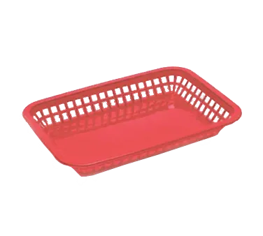 Introducing the TableCraft Products, 1077R, Basket, Fast Food, a must-have for commercial restaurants looking to optimize kitchen operations. This Grande Platter Basket is designed to enhance efficiency and elevate the dining experience. With its rectangular shape and generous dimensions of 10-3/4" x 7-3/4" x 1-1/2", it provides ample space for serving a variety of dishes. Made from heat-resistant polypropylene, this basket can withstand temperatures up to 150F/65C, making it suitable for use with heat lamps, dishwashers, and microwaves. Its vibrant red color adds a touch of style to any table setting. Proudly made in the USA, this basket is sold in convenient packs of 36, ensuring you always have enough on hand. Elevate your restaurant's presentation and efficiency with the TableCraft Products, 1077R, Basket, Fast Food.