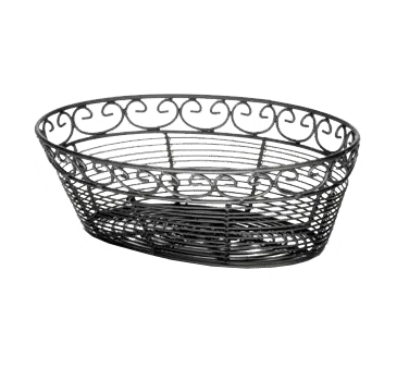 Diversify your dining solutions with TableCraft Products' BK27410 Basket. This Mediterranean Collection Basket is perfect for commercial restaurant use, adding a touch of elegance to your tabletop. Made of black powder-coated metal, this oval basket measures 10" x 6-1/2" x 3", providing ample space for serving bread, appetizers, or even displaying fresh fruits. Its hand wash only requirement ensures easy maintenance, while the sturdy construction guarantees durability in a busy restaurant environment. With a minimum order of just one each, this basket is a versatile addition to your restaurant's servingware collection. Whether you're running a fine dining establishment or a casual eatery, this Tabletop Metal Basket is designed to enhance your guests' dining experience. Elevate your presentation and impress your customers with this stylish and functional basket from TableCraft Products.