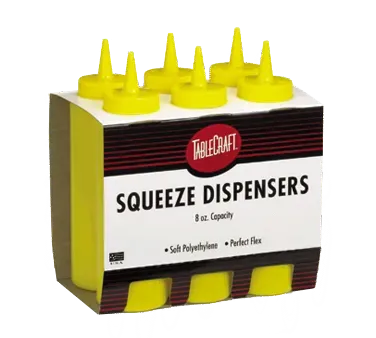 Transform spaces with innovation using TableCraft Products, C112M Squeeze Bottle. Designed specifically for commercial restaurant use, this squeeze bottle is a game-changer in the kitchen. With a 12 oz. capacity and a 38mm opening, it's perfect for holding and dispensing mustard, making it a must-have condiment accessory. The cone tip ensures precise and controlled dispensing, allowing chefs to add just the right amount of flavor to dishes. Made in the USA with soft polyethylene PerfectFlex material, this bottle is dishwasher safe and built to withstand the demands of a busy restaurant kitchen. The vibrant yellow color adds a pop of brightness to any table setting, while the pack of 12 ensures you always have a backup on hand. Elevate your restaurant's condiment game with TableCraft Products, C112M Squeeze Bottle.