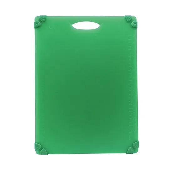 Experience the difference with TableCraft Products CBG1520AGN Cutting Board. Designed specifically for commercial restaurant use, this plastic cutting board is a must-have for any professional kitchen. With its generous size of 15" x 20" and 1/2" thickness, it provides ample space for slicing, dicing, and chopping ingredients. The integrated handle allows for easy transportation and storage, while the anti-slip grips ensure stability during use. Made from heat, chemical, and warp-resistant materials, this cutting board is built to withstand the demands of a busy kitchen. It is also dishwasher safe, making cleanup a breeze. The vibrant green color adds a pop of freshness to your workspace, while the NSF certification guarantees its safety and hygiene. Trust TableCraft Products CBG1520AGN Cutting Board to enhance efficiency and food preparation in your restaurant.