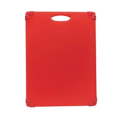 Create a seamless dining experience with the TableCraft Products, CBG1520ARD Cutting Board. This 15" x 20" plastic cutting board is designed for commercial restaurant use, making it an essential tool in any professional kitchen. The 1/2" thick board is heat, chemical, and warp resistant, ensuring durability and longevity. Its integrated handle and anti-slip grips provide stability and ease of use, allowing chefs to confidently chop, slice, and dice ingredients. The vibrant red color adds a pop of style to the kitchen while also helping to prevent cross-contamination by designating it for specific food groups. This cutting board is NSF certified, guaranteeing its safety and sanitation standards. Dishwasher safe for easy cleaning, this TableCraft cutting board is a must-have for any restaurant looking to enhance efficiency and maintain a high level of food safety.