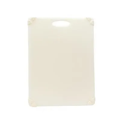Modernize kitchen efficiency with the TableCraft Products CBG1520AWH Cutting Board. Designed specifically for commercial restaurant use, this plastic cutting board is a must-have for any professional kitchen. With a generous size of 15" x 20" and a thickness of 1/2", it provides ample space for slicing, dicing, and chopping ingredients. The integrated handle allows for easy transportation and storage, while the anti-slip grips ensure stability during use. Made from heat, chemical, and warp-resistant materials, this cutting board is built to withstand the demands of a busy kitchen. It is also dishwasher safe, making cleanup a breeze. The white color adds a clean and professional look to any food preparation area. NSF certified, this cutting board meets the highest standards of safety and sanitation. Upgrade your kitchen with the TableCraft Products CBG1520AWH Cutting Board and experience enhanced productivity and efficiency.