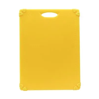 Introducing the TableCraft Products CBG1520AYL Cutting Board, Plastic, a must-have for any commercial restaurant looking to craft culinary wonders. This 15" x 20" cutting board is designed with the needs of professional chefs in mind. Its 1/2" thickness provides durability and stability, while the integrated handle allows for easy transportation and storage. The anti-slip grips ensure safety during food preparation, even in fast-paced kitchen environments. Made from heat, chemical, and warp-resistant materials, this cutting board is built to withstand the demands of a busy restaurant kitchen. It is also dishwasher safe, making cleanup a breeze. The vibrant yellow color adds a pop of brightness to any kitchen, while the NSF certification guarantees its quality and safety. With TableCraft Products CBG1520AYL Cutting Board, Plastic, you can elevate your culinary creations while maintaining the highest standards of hygiene and efficiency.