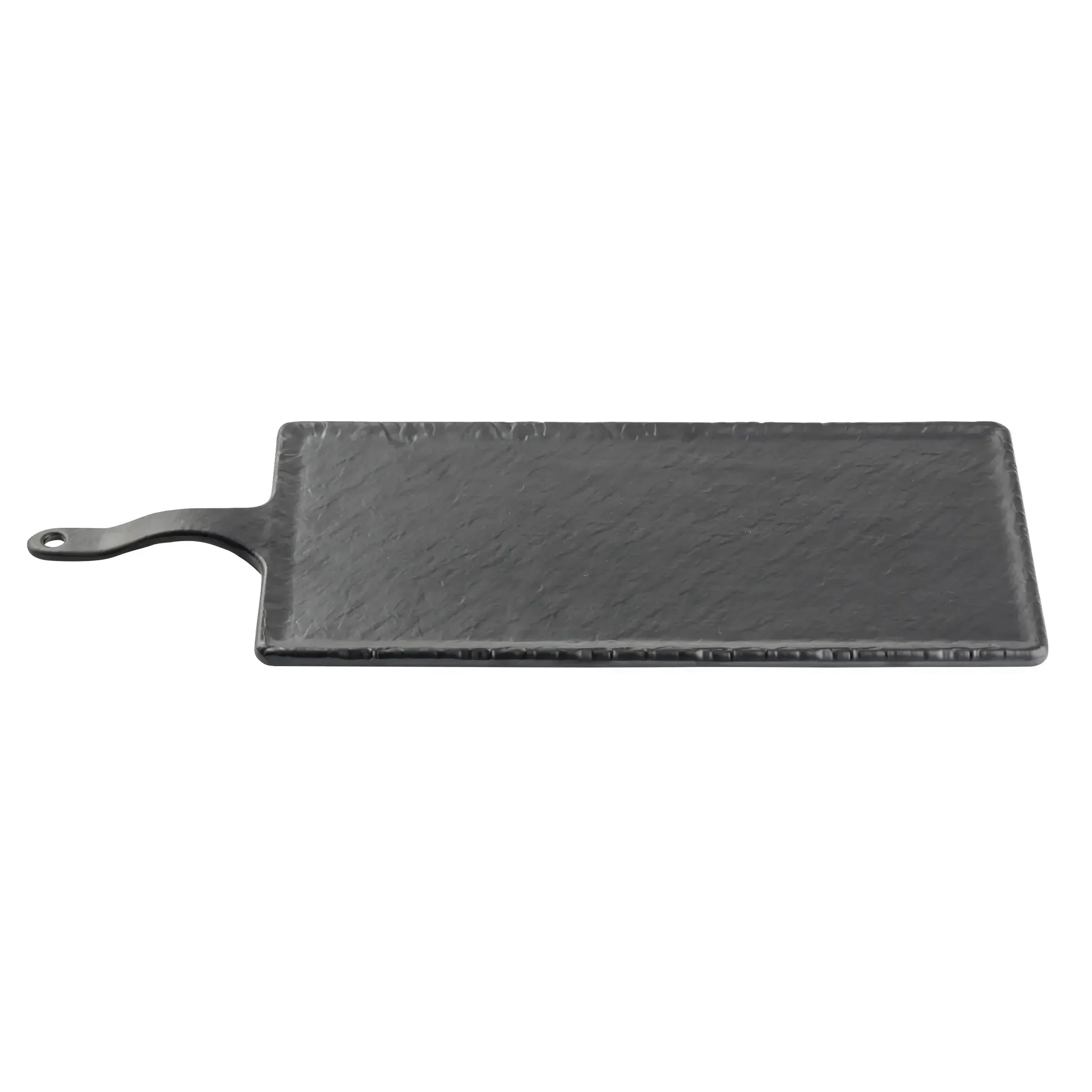 Introducing the TableCraft Products MSP5120 Serving & Display Tray, designed to optimize restaurant workflow. This rectangular serving paddle from the Frostone Collection measures 20" x 8" x 1/2" and is temperature safe up to 212°F (100°C). Crafted from durable melamine in a sleek black slate finish, this tray is not only dishwasher safe but also exudes an air of sophistication. With a minimum order of just one, this serving tray is perfect for commercial restaurant use. Its generous size allows for the presentation of multiple dishes, while its temperature-safe construction ensures food stays fresh and appetizing. The TableCraft Products MSP5120 Serving & Display Tray is a versatile and practical addition to any restaurant's serving and display collection, offering both style and functionality. Elevate your restaurant's presentation and streamline your workflow with this exceptional serving tray.