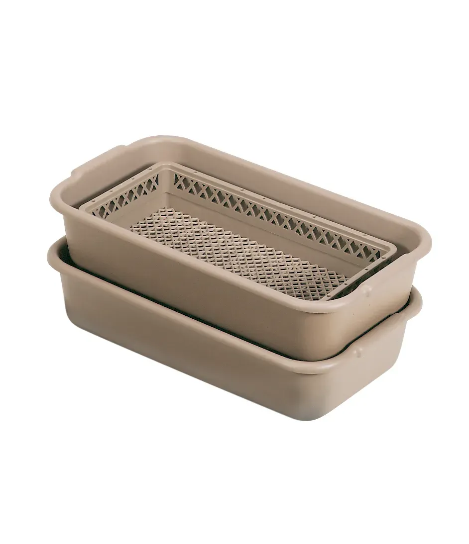 Allow your flatware to soak thoroughly before washing with the soak-and-wash system by Vollrath. This system comes with a half-size tub and Traex open rack, providing everything you need to get your flatware cleaner than ever. The rack holds plenty of flatware at one time while keeping it all together and out of the way. The durable construction promises years of use, and the molded handles on each side ensure easy gripping and transportation, making this soak-and-wash tub an excellent choice for any kitchen.