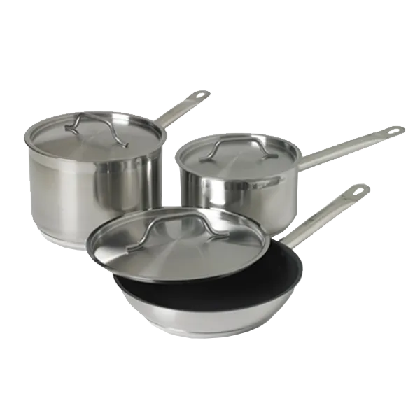 Take your kitchen to the next level with the Vollrath, 3820, Pot Pan Set. This Optio Deluxe Cookware Set is a must-have for any commercial restaurant. The set includes six pieces, ensuring you have everything you need to create culinary masterpieces. Each piece is made of high-quality stainless steel, making them durable and long-lasting. The induction-ready design allows for efficient and even cooking, saving you time and energy. With the NSF certification, you can trust that these pots and pans meet the highest standards of safety and sanitation. Whether you're sautéing, boiling, or frying, this pot pan set has you covered. Upgrade your kitchen today and experience the difference this cookware set can make.