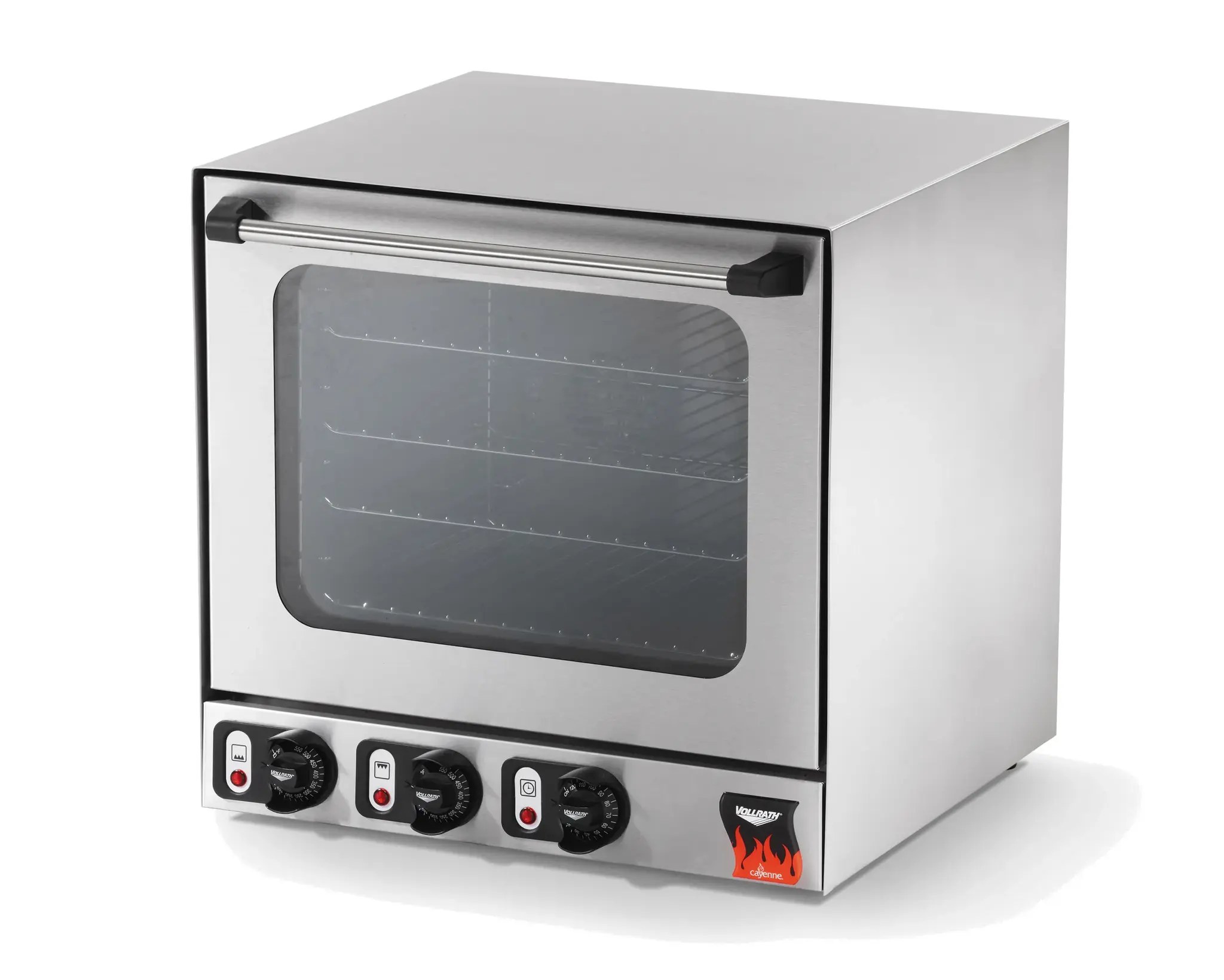 Unleash gastronomic brilliance with the Vollrath, 40701, Convection Oven, Electric. This countertop oven is a game-changer for commercial restaurants, offering precise temperature control from 150 F to 570 F. With its broil and bake functions, you can easily prepare a wide range of dishes to perfection. The oven comes with four non-tip steel wire shelves that fit four 1/2 size sheet pans, allowing you to maximize your cooking capacity. Its double wall insulated construction ensures even heat distribution, while the removable shelf runners make cleaning a breeze. The cool touch door and interior light provide convenience and safety during operation. Made with stainless steel, this oven is built to withstand the demands of a busy kitchen. With 2520 watts of power and 11 amps, this electric convection oven delivers exceptional performance. Trust Vollrath, a reputable vendor in the industry, to elevate your culinary creations to new heights.