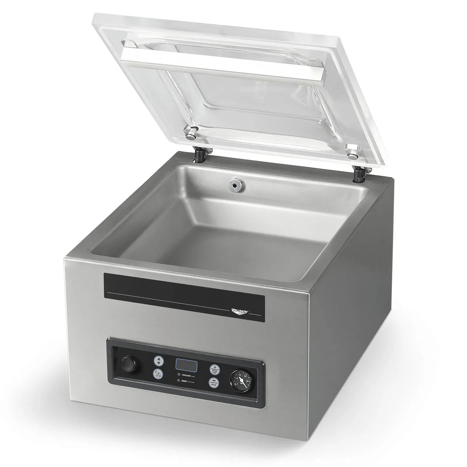 Unleash your inner chef with the Vollrath, 40831, Food Packaging Machine. This medium in-chamber vacuum packing machine is a game-changer for commercial restaurants. With its spacious chamber size of 14-1/2"W x 17"D x 4"H, it can accommodate bags up to 12" and a maximum product height of 6". The machine comes with two insert plates for packing small products, ensuring versatility in your food packaging needs. The removable 12" seal bar and sensor control guarantee precise and efficient sealing every time. The stainless steel exterior with a transparent lid not only adds a sleek look to your kitchen but also allows you to monitor the vacuum sealing process. Equipped with a powerful Busch pump, this machine delivers exceptional performance. With a 2-year warranty and ETL-sanitation certification, you can trust the Vollrath, 40831, Food Packaging Machine to meet the high standards of your commercial restaurant.