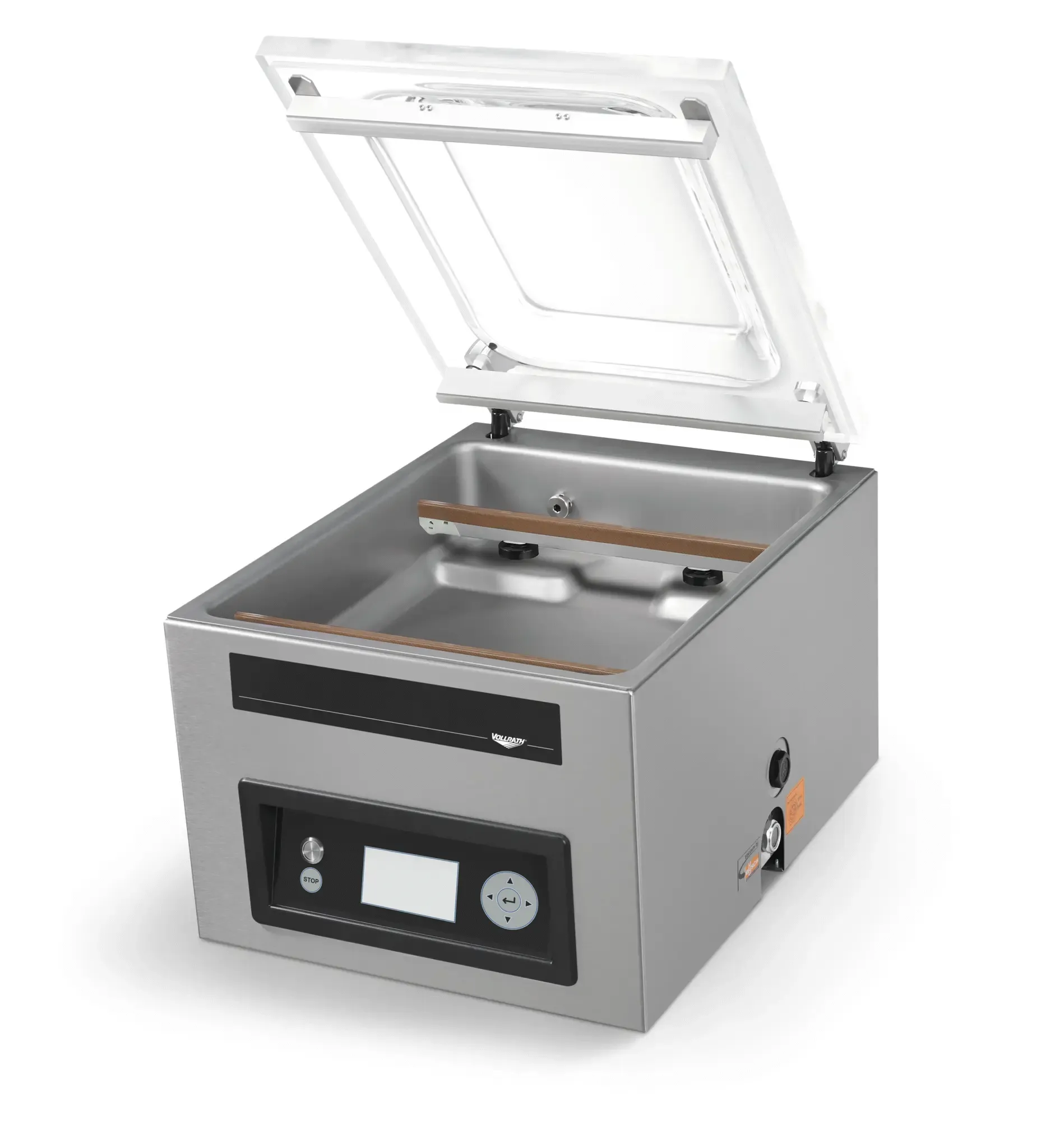 Reduce waste and extend the shelf life of your food with the Vollrath® large in-chamber vacuum pack-machine. This unit has many unique features, including password-controlled access, HACCP logging and label printing, for increased safety and convenience. The front control panel allows you to set a definable vacuum function by time or sensor control, while a helpful liquid-control feature ensures high-quality packaging. Optional programs include soft-air, tenderize, marinate and more, allowing you to use this vacuum sealer for a variety of foods.