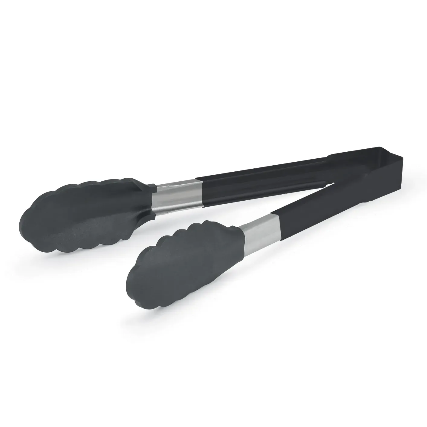 Unleash your inner chef with the Vollrath 4780922 Utility Tongs. These one-piece tongs are a must-have tool for any commercial restaurant. Made with heavy gauge stainless steel, they are built to withstand the demands of a busy kitchen. The tongs are equipped with all-natural antimicrobial properties, ensuring a hygienic food handling experience. With a length of 9-1/2 inches, they provide the perfect balance of control and reach. The high temperature black nylon ends are heat resistant up to 450F, allowing you to handle hot foods with ease. The black plastic coated handles are heat resistant up to 180F, ensuring a comfortable grip even when working with high-temperature dishes. Dishwasher safe for easy cleaning, these tongs are a convenient addition to any kitchen. Made in the USA and backed by a Limited Lifetime Warranty, the Vollrath Utility Tongs are a reliable and durable choice for professional chefs.