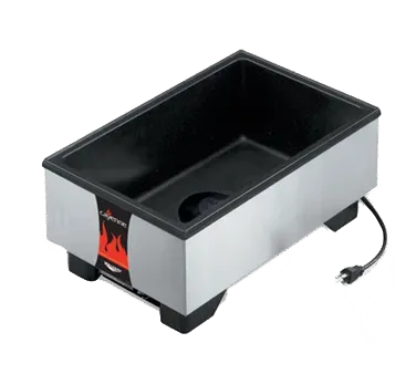 Deliver food perfection with the Vollrath, 71001, Food Pan Warmer, Countertop. This countertop food warmer is designed to meet the demands of a commercial restaurant, ensuring that your dishes are served at the perfect temperature every time. With its 6" deep well and capillary tube thermostat, you can easily control and maintain the ideal heat for your food. The dome heating element evenly distributes heat throughout the well, eliminating hot spots and ensuring consistent warming. The low-water indicator light alerts you when it's time to refill, preventing any interruptions in service. The black interior and stainless steel exterior not only provide durability but also give a sleek and professional look to your kitchen. With non-skid feet, this food warmer stays securely in place, even during the busiest of times. Made in the USA and certified by cULus and NSF, you can trust the quality and reliability of this Vollrath food pan warmer. Upgrade your restaurant's food warming capabilities with the Vollrath, 71001, Food Pan Warmer, Countertop.