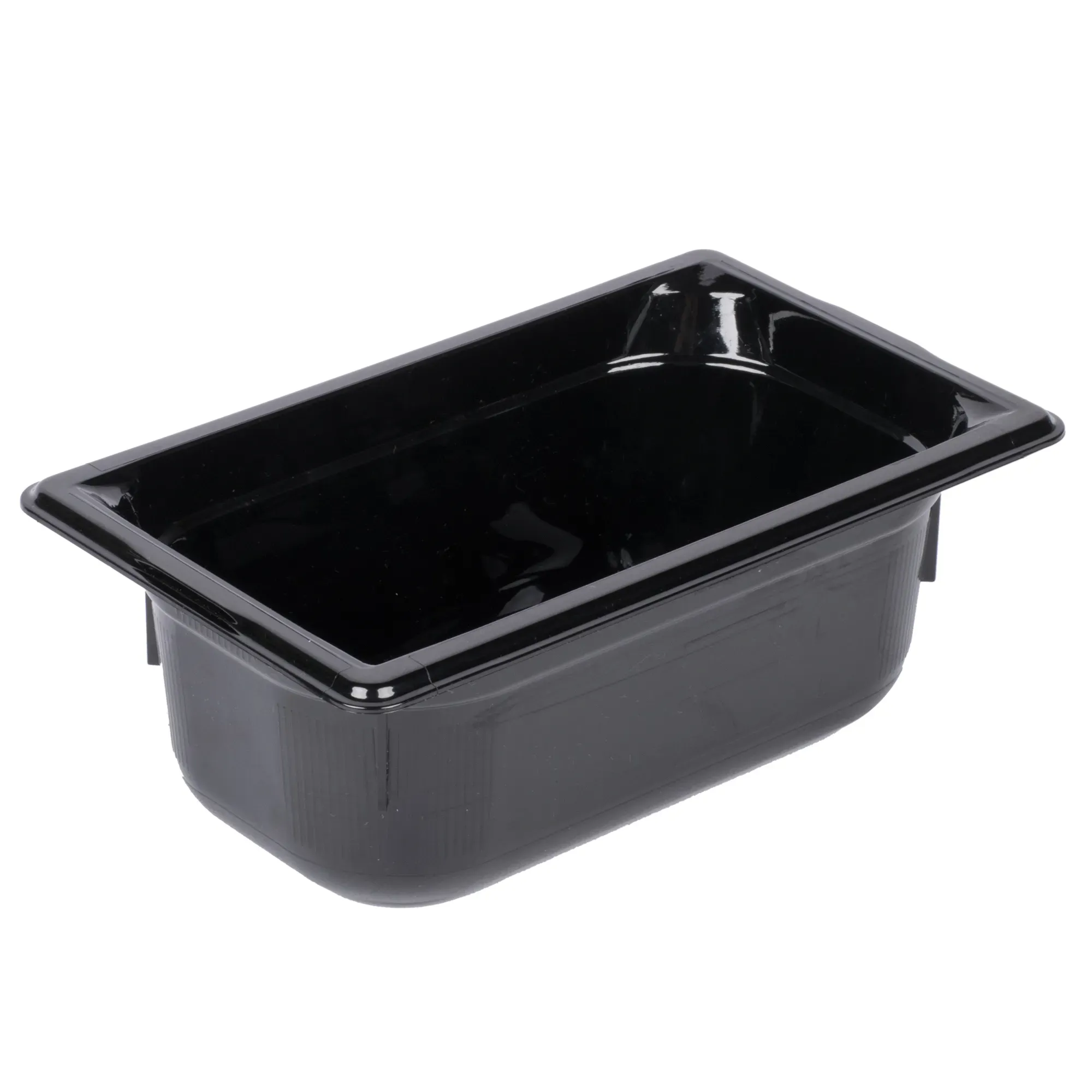 Perfect for storage and cold applications, the Super Pan plastic pan by Vollrath keeps your items organized and visible. The durable plastic is approved for temperatures between -40°F and 210°F, and the black color creates a sleek appearance. Reinforced corners add strength, while antijam stacking lugs allow easy separation and lifting of the pan. The integral frame enhances food presentation, making this an excellent addition to a wide range of commercial operations.