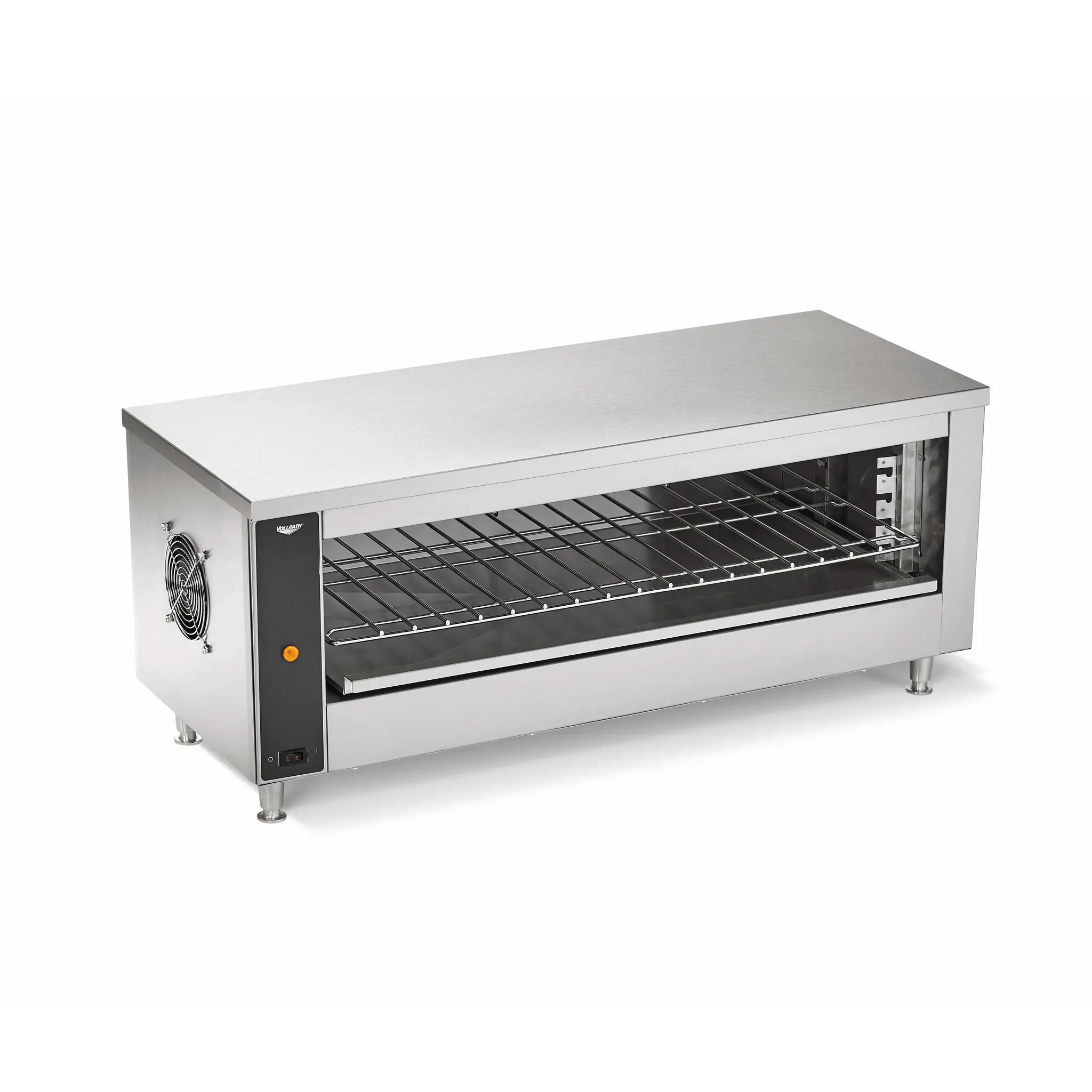 Experience kitchen innovation with the Vollrath CM4-24035PA Electric Cheesemelter. This countertop unit is designed to meet the needs of commercial restaurants, offering a convenient and efficient way to melt cheese and enhance the flavor of your dishes. With its adjustable shelf and five positions, you can easily accommodate different sizes of plates and dishes. The 27-1/2" product opening provides ample space for melting cheese evenly and quickly. The metal-sheathed heating elements ensure consistent heat distribution, while the 15-minute timer allows you to set the desired melting time. The standby mode and weight-activated plate bring the unit from standby to full power, saving energy and reducing operating costs. Made with stainless steel construction, this cheesemelter is durable and easy to clean. Trust Vollrath, a reputable vendor known for their quality products, and elevate your restaurant's culinary creations with the CM4-24035PA Electric Cheesemelter.