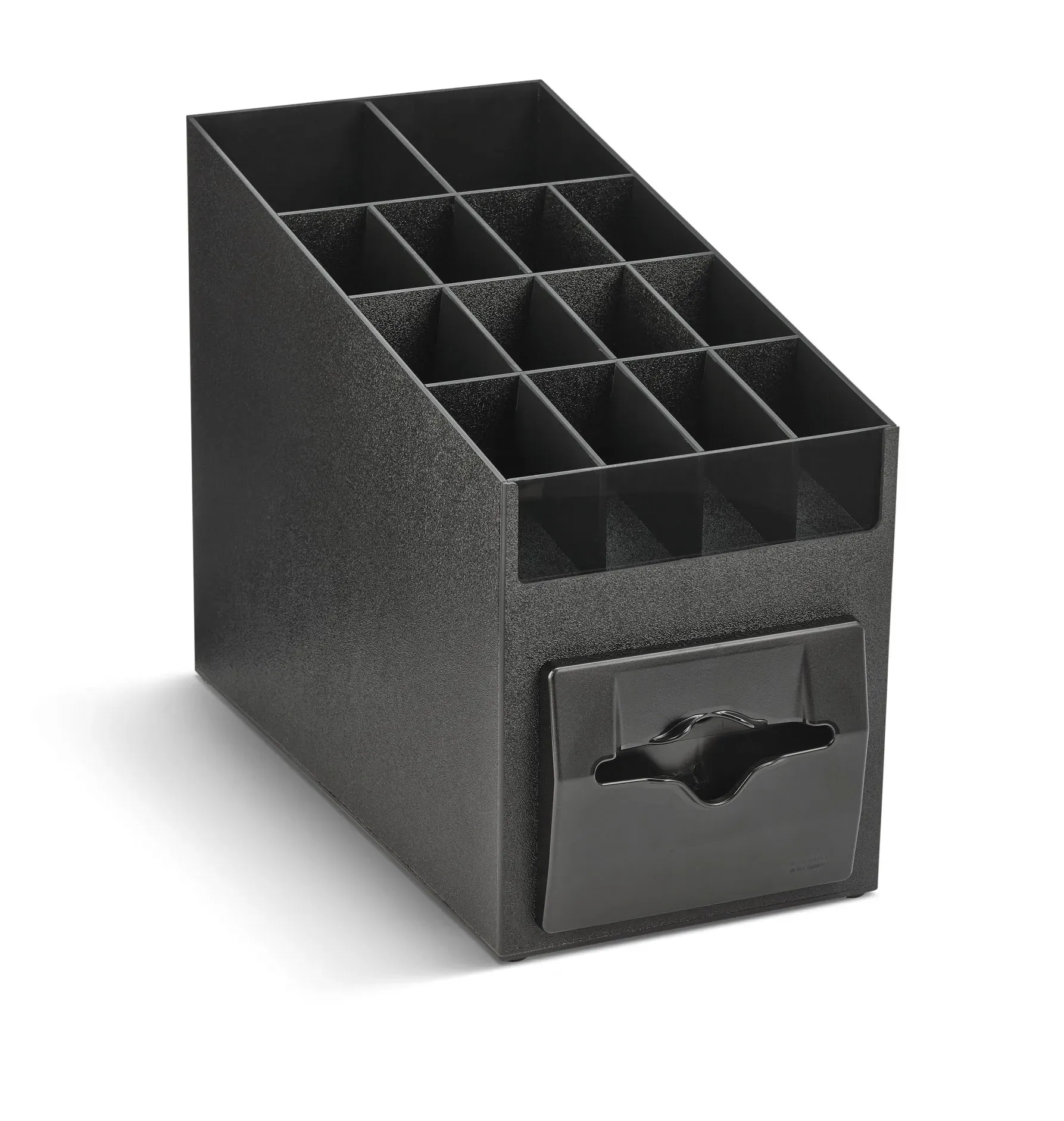 This combined napkin dispenser and cup, lid and condiment organizer by Vollrath transforms your counter into a one-stop self-service station. The ABS plastic and smoked-acrylic construction is equally sleek and durable, promising years of use, and the napkin dispenser features overfill protection for stress-free operation and refilling. The unique design maximizes counter space by stacking your condiments on top of your napkin dispenser, keeping everything within reach, and the adjustable compartments allow you to set up your dividers in whatever way serves your customers best. The slanted design offers a clear view of items while preventing them from falling out, making self-service easy and more sanitary.