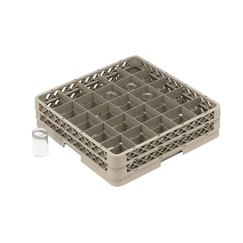 Cook with confidence and flair using the Vollrath TR13BBBBB Dishwasher Rack. This glass compartment rack is designed to meet the needs of commercial restaurants, ensuring efficient and effective cleaning of glassware and stemware. With a total of 25 compartments, each measuring 3-1/2" square, this rack provides ample space to securely hold and separate your glassware during the washing process. The rack also comes with five 25-compartment extenders, allowing you to customize the rack to accommodate larger quantities of glassware. Made with co-polymer plastic and featuring a double wall construction, this rack is durable and built to withstand the demands of a busy restaurant environment. The open bottom and sidewall design facilitate thorough cleaning and drying, while the handles on all four sides make it easy to transport the rack. Additionally, this dishwasher rack is NSF certified, ensuring it meets the highest standards of sanitation and safety. Trust Vollrath for reliable and high-quality restaurant equipment.