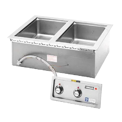 Introducing the Wells MOD-200TDM Hot Food Well Unit, Drop-In, Electric. Drive restaurant profitability with this top-of-the-line food warmer. Designed for commercial restaurant use, this unit is built to deliver exceptional performance and efficiency. With two 12" x 20" openings and manifold drains with one valve, this food warmer allows for wet or dry operation, giving you the flexibility to meet your specific needs. The thermostatic controls ensure precise temperature regulation, while the stainless steel interior and insulated aluminum steel housing provide durability and insulation. This unit operates on 208/240v/60/1-ph, with 1240/1650 watts per well, making it a powerful addition to any kitchen. The MOD-200TDM is quick-ship ready, ensuring a fast and convenient delivery. Trust Wells, a reputable vendor in the industry, to provide you with a high-quality, reliable hot food well unit that will enhance your restaurant's efficiency and profitability.