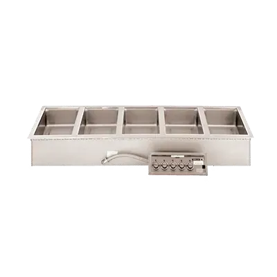Cook with precision using the Wells MOD-500TDM Hot Food Well Unit. This top-mount, built-in electric food warmer is designed to meet the demands of a busy commercial restaurant. With five 12" x 20" openings, it offers ample space to keep your dishes warm and ready to serve. The manifold drains with one valve ensure easy and efficient cleaning, while the thermostatic controls allow you to adjust the temperature to suit your needs. The stainless steel interior and insulated aluminum steel housing provide durability and excellent heat retention. Whether you need wet or dry operation, this food warmer can handle it all. Its cULus certification guarantees its safety and reliability. Trust Wells, a reputable vendor in the industry, and invest in the MOD-500TDM Hot Food Well Unit for your restaurant's success.