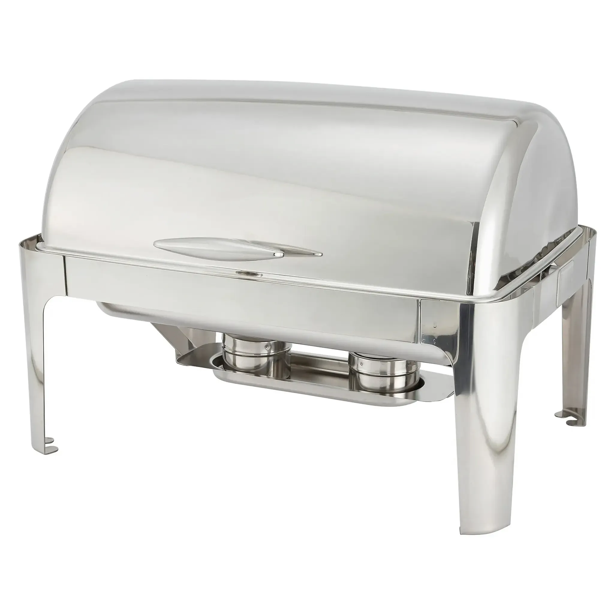 Elevate culinary creations with the Madison Chafer 8 qt. Full Size Rectangular Stainless Steel Frame Roll Top from Winco. This elegant chafer is designed to meet the high standards of any restaurant setting, ensuring both functionality and aesthetic appeal. The Madison Chafer features a robust stainless steel frame that guarantees durability and longevity, making it a reliable choice for busy kitchens and high-traffic buffet lines. Its full-size 8-quart capacity is perfect for serving large quantities of food, making it ideal for banquets, catering events, and upscale dining establishments. One of the standout features of the Madison Chafer is its roll-top lid, which offers a 180-degree full opening and a 90-degree intermediate opening. This versatile design allows for easy access to the food while maintaining the temperature and presentation. The roll-top mechanism ensures that the lid stays securely in place, providing a seamless dining experience for your guests. Included with the Madison Chafer are a food pan, water pan, and fuel holders, making it a complete solution for your chafing needs. The mirror finish adds a touch of sophistication, reflecting the quality and care put into every dish you serve. Whether you are hosting a grand event or a simple buffet, the Madison Chafer 8 qt. Full Size Rectangular Stainless Steel Frame Roll Top from Winco is the perfect addition to your restaurant's serving equipment. Its combination of style, functionality, and durability ensures that your culinary creations are presented in the best possible light.