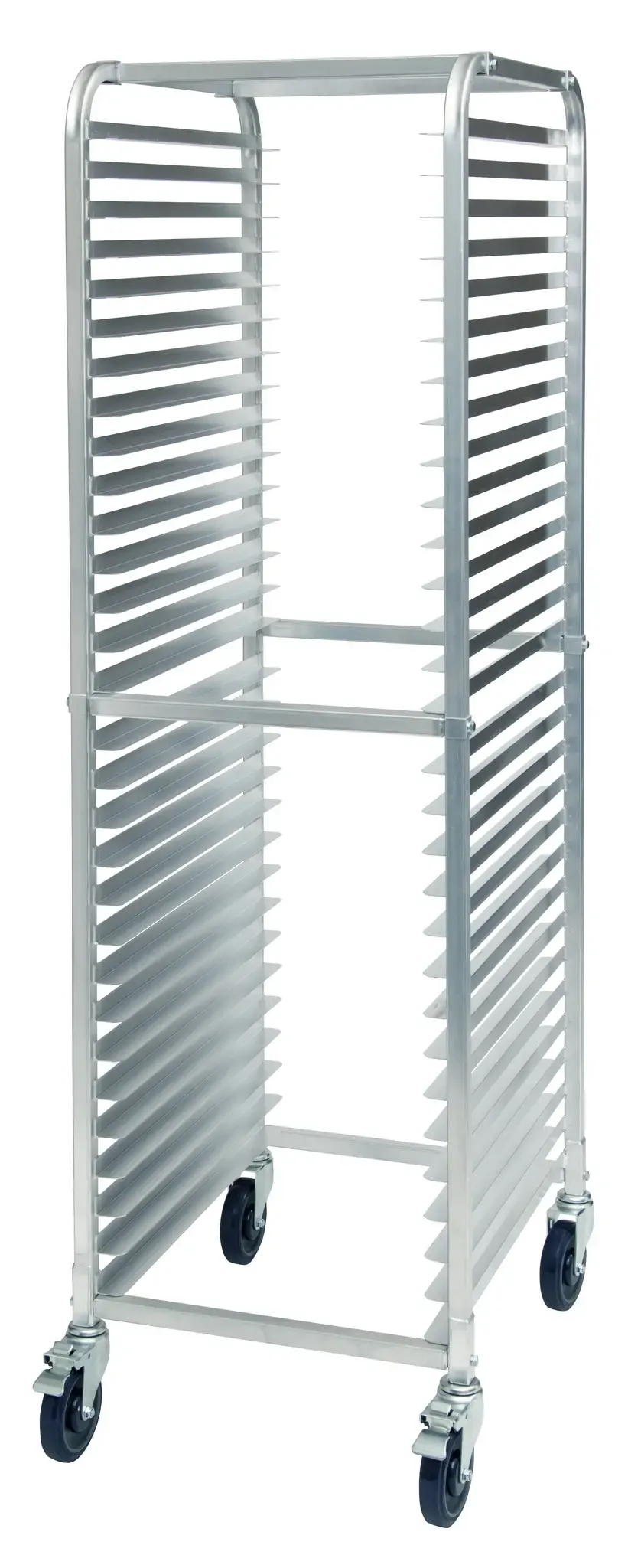 Engineered for excellence using top-tier materials, the Winco Sheet Pan Rack is an indispensable asset for any bustling restaurant kitchen. Designed to accommodate up to 30 full-size (18 x 26) or 60 half-size (18 x 13) sheet pans, this mobile rack boasts a robust 700 lb. capacity, ensuring it can handle even the heaviest of loads with ease.