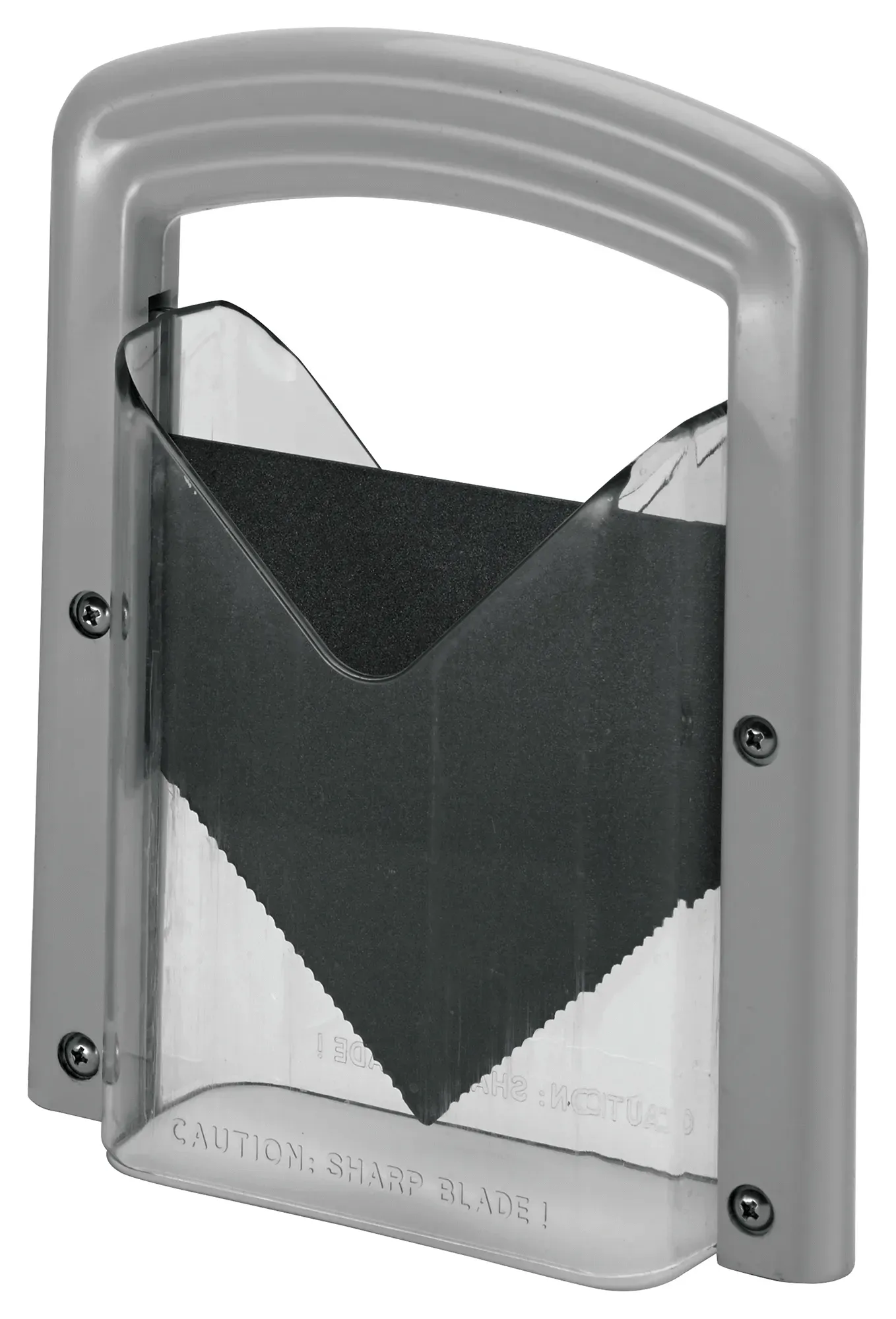 High-carbon, non-stick blade with serrated edge provides precise cuts with every slice Clear guard allows visibility & protects hands/fingers from injury