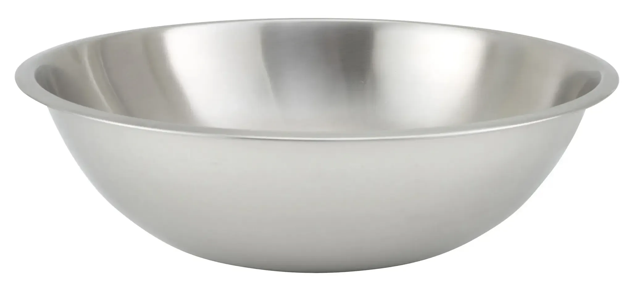 The round shape of the Winco Mixing Bowl facilitates even mixing, while the heavy-duty stainless steel construction resists dents and scratches, maintaining its sleek appearance even with frequent use. This robust material also ensures that the bowl can withstand high temperatures, making it suitable for a variety of culinary tasks.