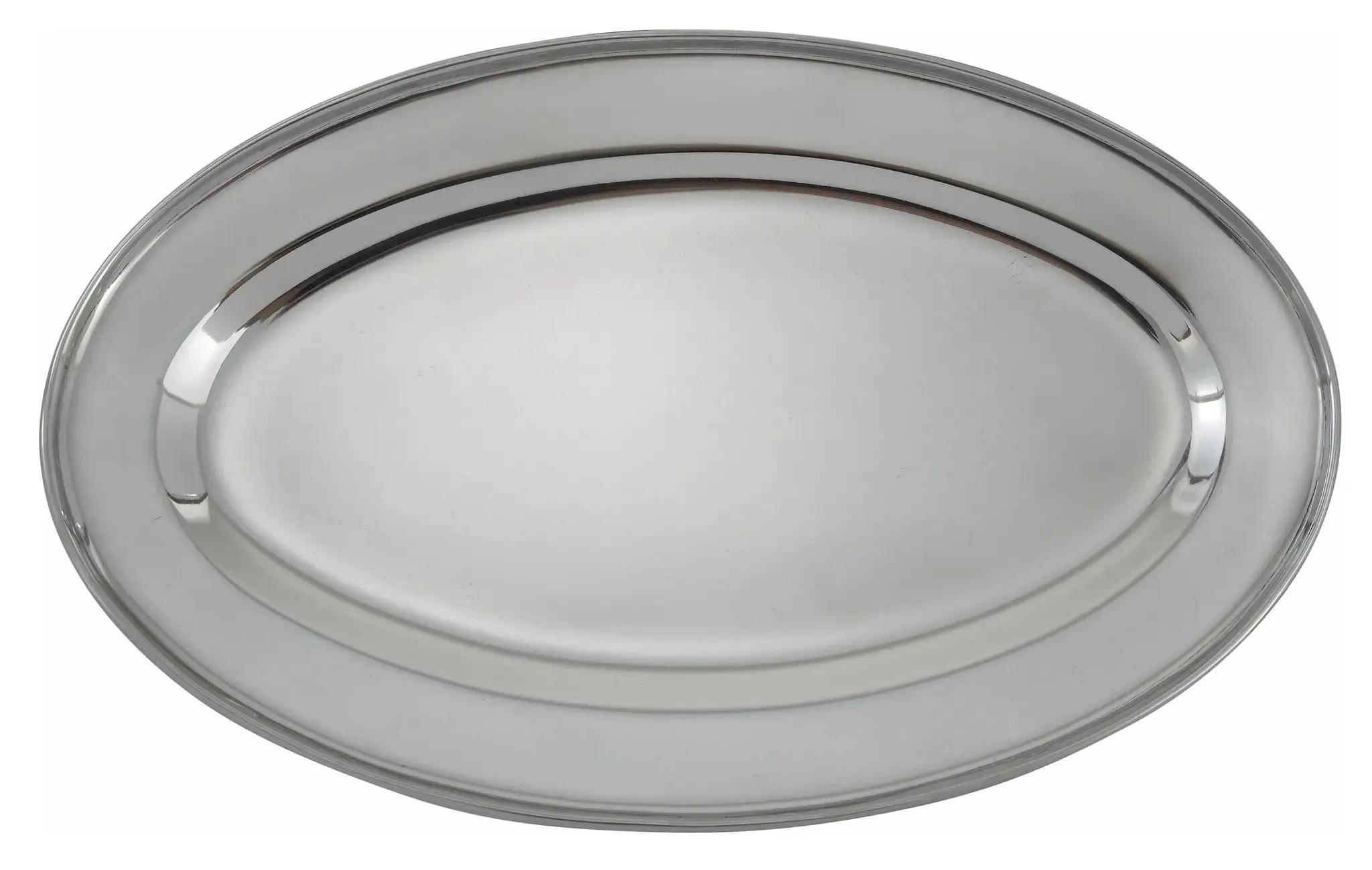 The perfect addition to any kitchen with using the Winco Stainless Steel Platter. This elegant and durable platter, measuring 12 inches in length and 8-5/8 inches in width, is crafted from 18/8 heavy stainless steel, ensuring both longevity and a sleek, professional appearance. Its oval shape provides a sophisticated presentation for any dish, making it an ideal choice for upscale restaurants, catering events, or any dining establishment aiming to impress.
