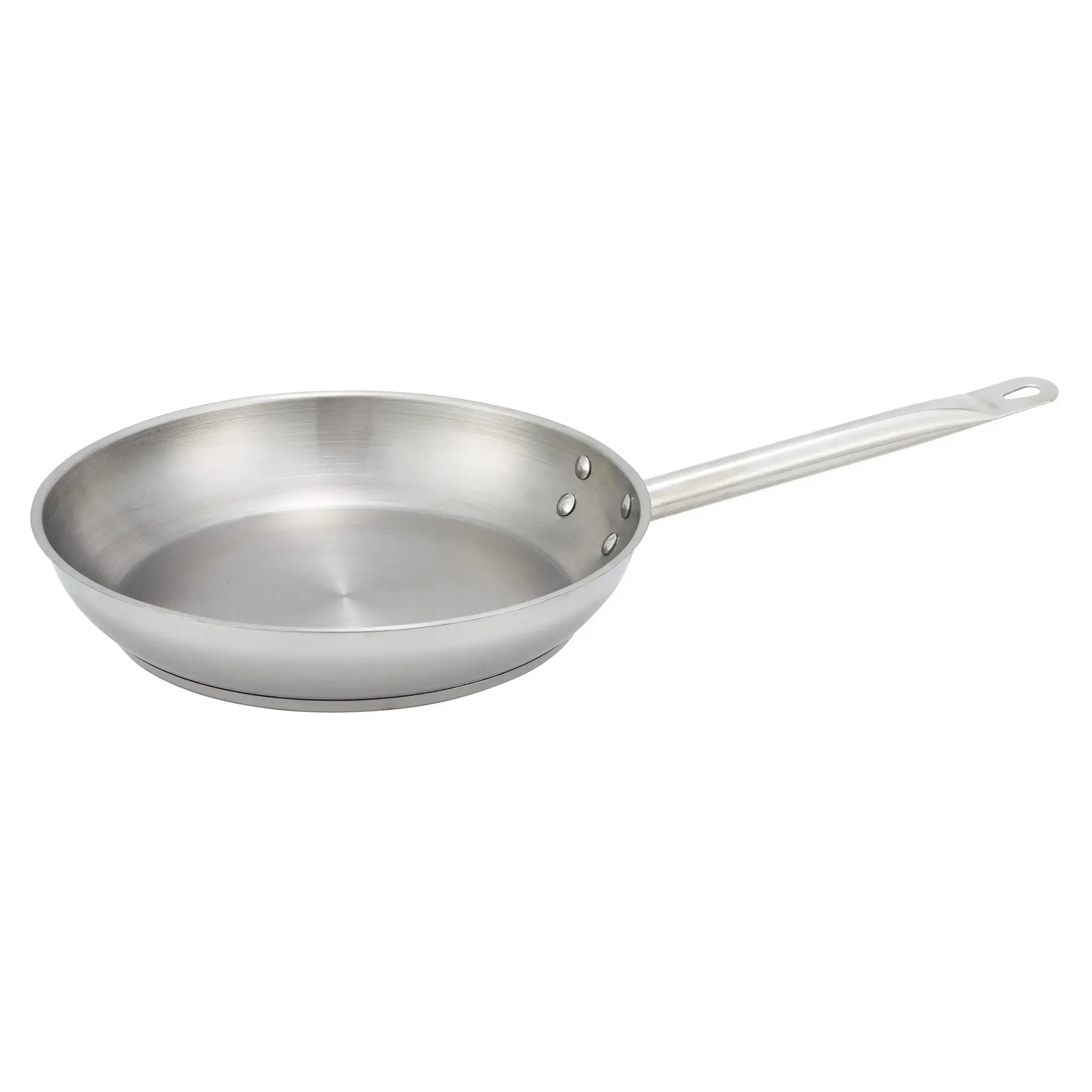 Crafted from 18/8 stainless steel, the Winco Premium Fry Pan is not only durable but also induction ready, providing versatility across different cooking surfaces. The riveted handle offers a secure and comfortable grip, allowing chefs to maneuver the pan with ease and confidence, even during the busiest service hours.