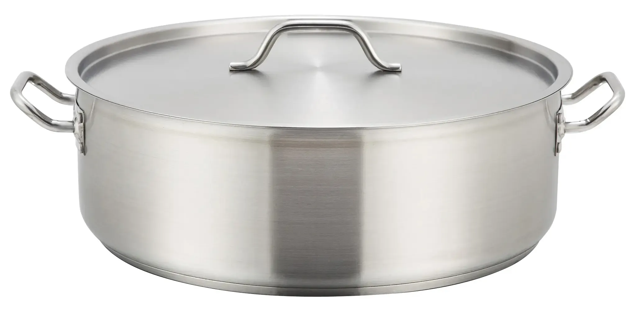 Ideal for professional settings, the Winco Premium Brazier 25 qt. is an essential addition to any restaurant kitchen. This high-capacity brazier, with a 17-3/4 inch diameter and 6-inch height, is perfect for preparing large quantities of soups, stews, and braised dishes. Crafted with a tri-ply heavy-duty bottom featuring an aluminum core, it ensures even heat distribution and superior cooking performance.