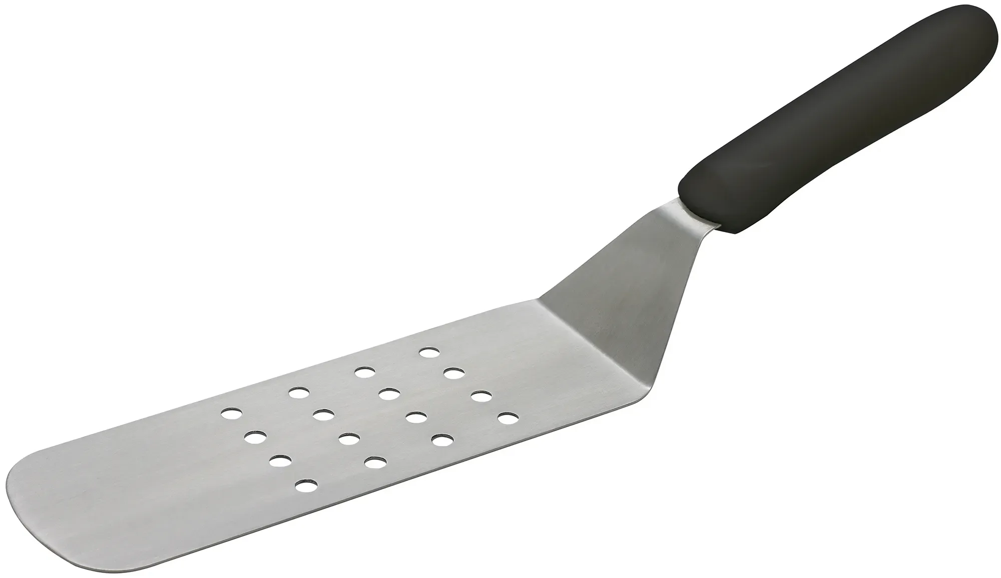 Designed for durability and easy to use with the demands of a bustling restaurant kitchen, the Winco Offset Turner is an essential tool for any culinary professional. Featuring an 8-1/4 x 2-7/8 inch stainless steel perforated blade, this turner is perfect for flipping, turning, and serving a variety of foods with ease. The perforated design allows for efficient draining of excess oils and liquids, ensuring your dishes are presented perfectly every time.