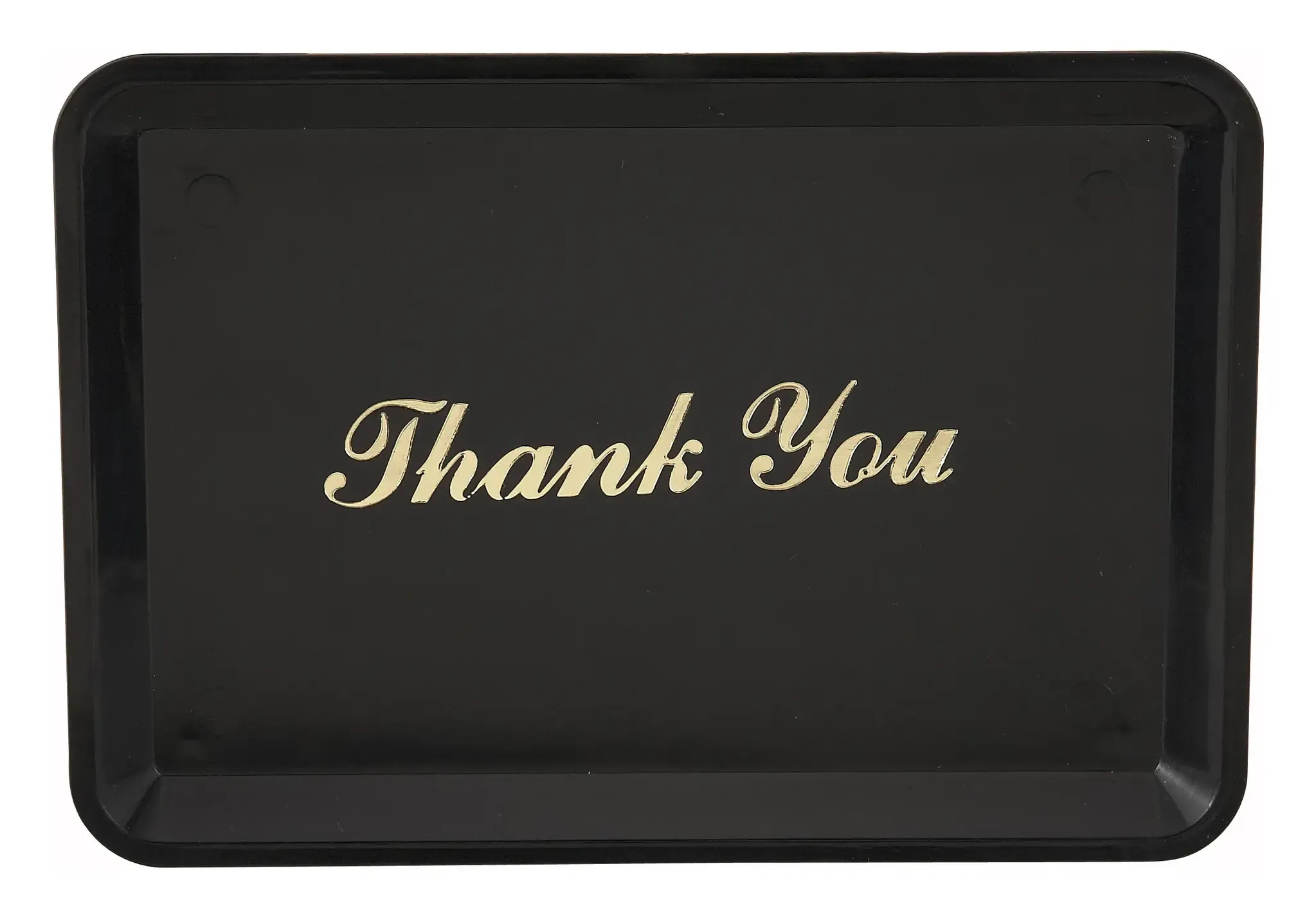 Make a statement in the kitchen with the Winco Tip Tray. This elegant and functional tray, model TT-46, is designed to enhance the dining experience in your restaurant. Measuring 4-1/2 x 6-1/2 inches, this rectangular plastic tray is the perfect size for presenting the bill to your guests in a sophisticated manner. Crafted in a sleek black color, the Winco Tip Tray features a refined gold imprint that reads "Thank You," adding a touch of class and appreciation to every transaction. The durable plastic construction ensures longevity and ease of maintenance, making it a practical choice for high-traffic restaurant environments. The understated elegance of the Winco Tip Tray seamlessly blends with any restaurant decor, from casual eateries to fine dining establishments. Its compact size allows for easy handling and storage, while the gold imprint provides a subtle yet impactful way to express gratitude to your patrons. Incorporating the Winco Tip Tray into your service routine not only enhances the overall dining experience but also reinforces a positive impression of your establishment. The model TT-46 is a testament to Winco's commitment to quality and functionality, ensuring that every detail of your restaurant's service is thoughtfully considered. Elevate your restaurant's presentation and show your guests that you care with the Winco Tip Tray. Its combination of durability, elegance, and practicality makes it an indispensable tool for any dining establishment.
